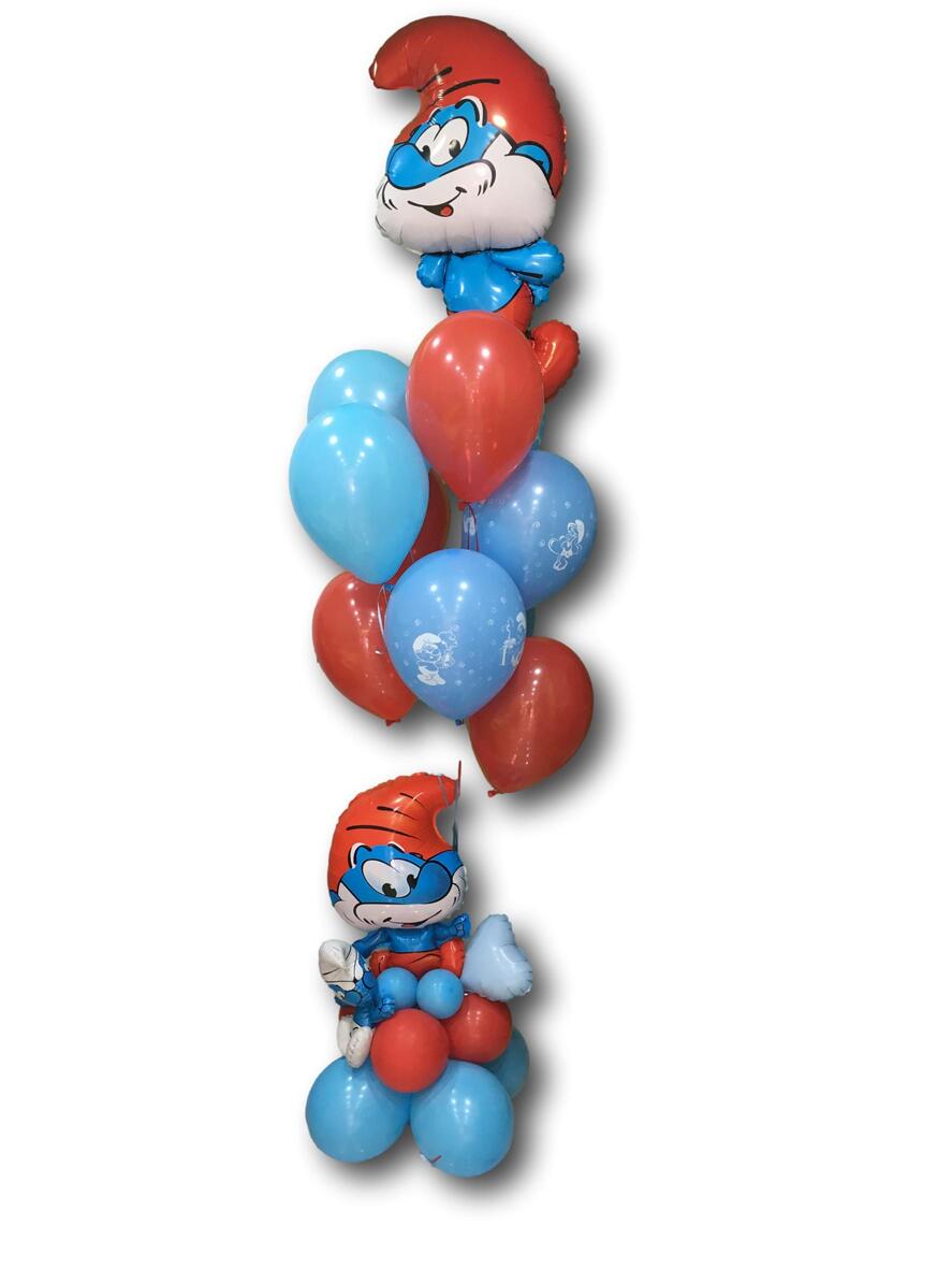 Balloon bouquet with central smurf dad, round latex and base