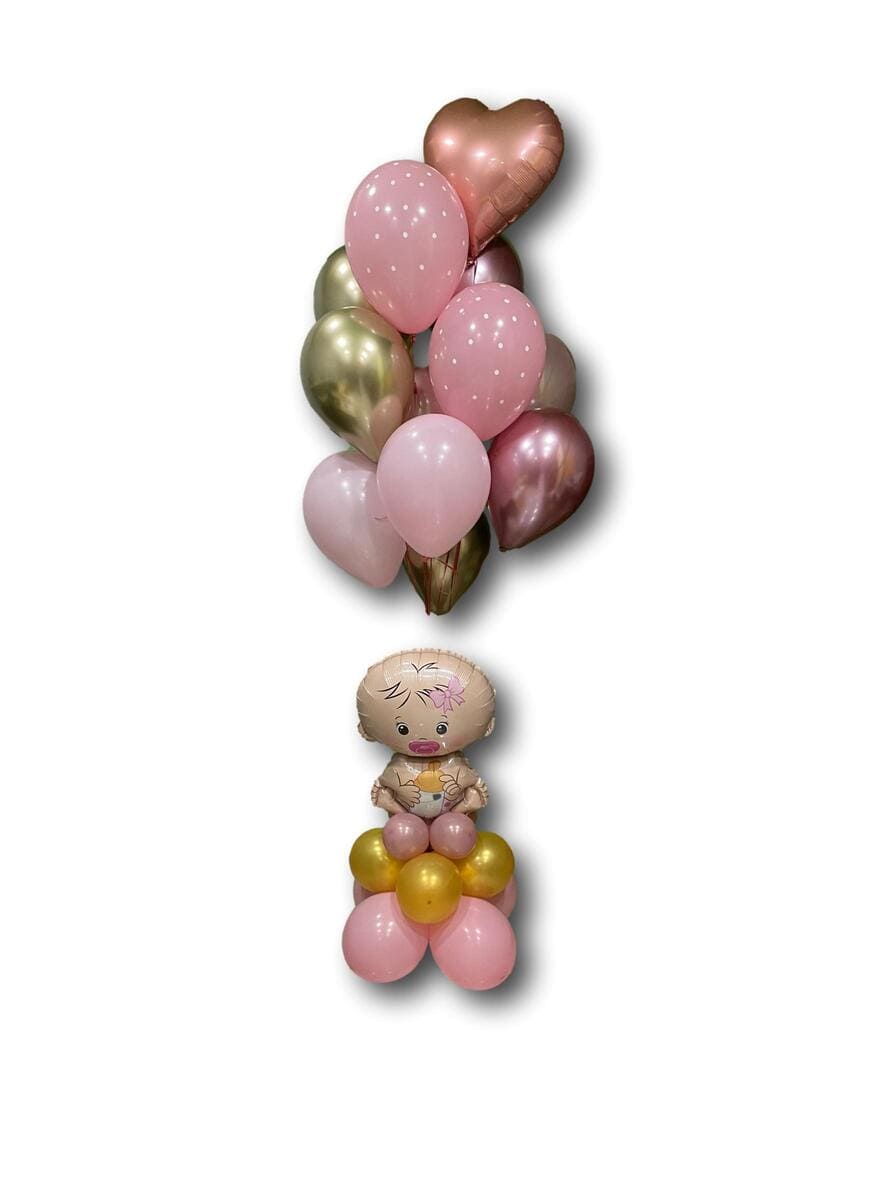 Μπουκέτο από μπαλόνια γέννησης με μπαλόνι foil στη βάση του μπουκέτου Ύψος 2 μέτρα Όλες οι συνθέσεις μπορούν να γίνουν από κορίτσι σε αγόρι και το αντίστροφο.