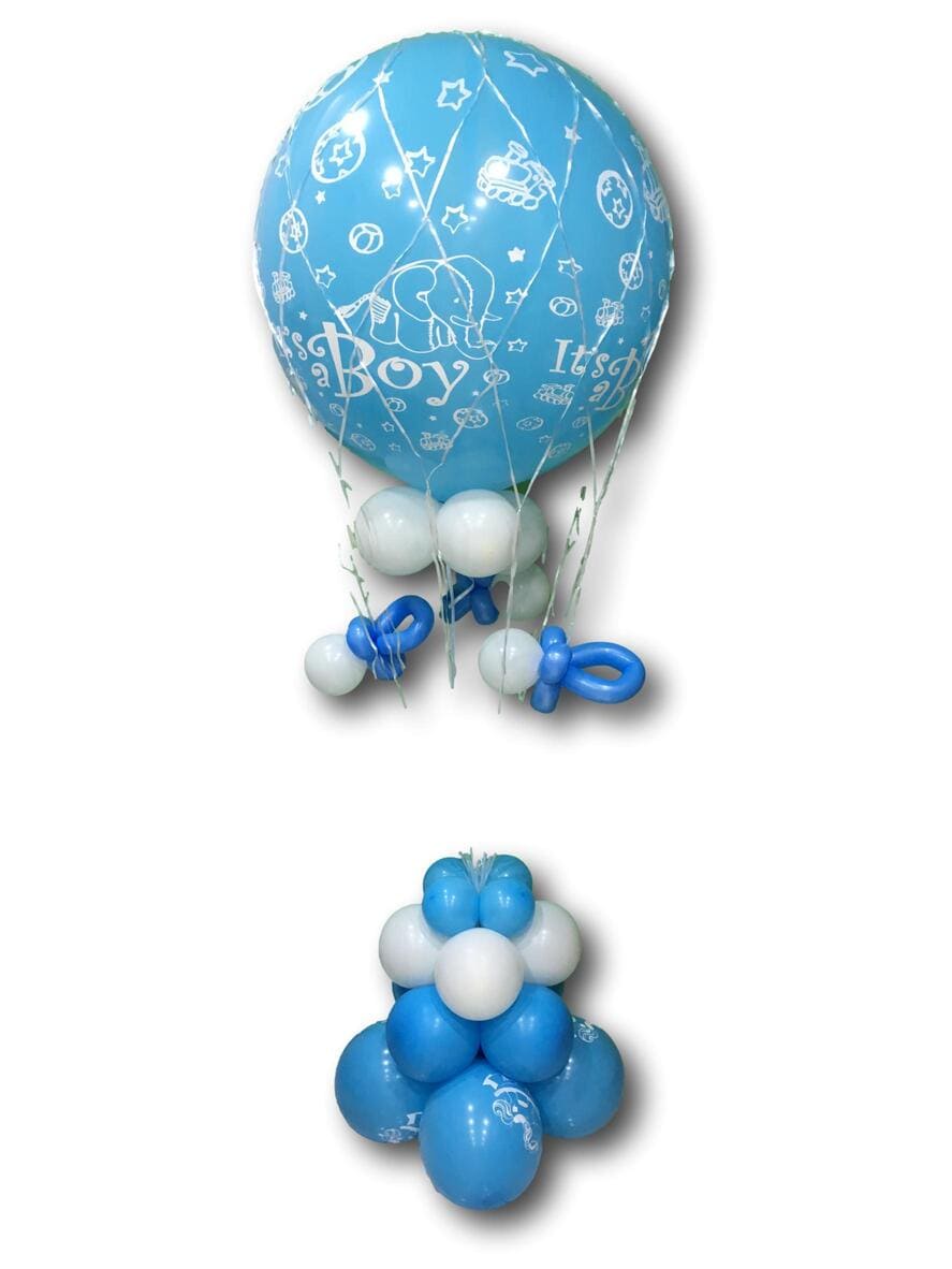 Balloon composition with a large balloon that rests on the base with a net. On the net there are pacifiers in the same colors Height 2.40 meters Όλες οι συνθέσεις μπορούν να γίνουν από κορίτσι σε αγόρι και το αντίστροφο.