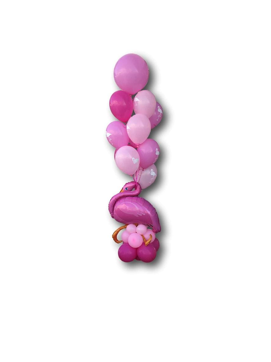 Μπουκέτο μπαλονιών με φλαμίνγκο στη βάση -10 στρογγυλά latex με τύπωμα και κεντρικό μεγαλύτερο μπαλόνι latex