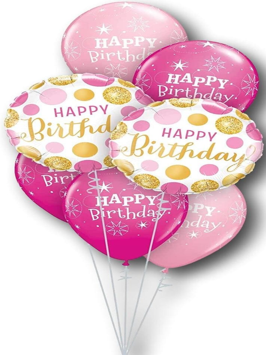 Bouquet of balloons with six latex and 2 foil happy birthday dots