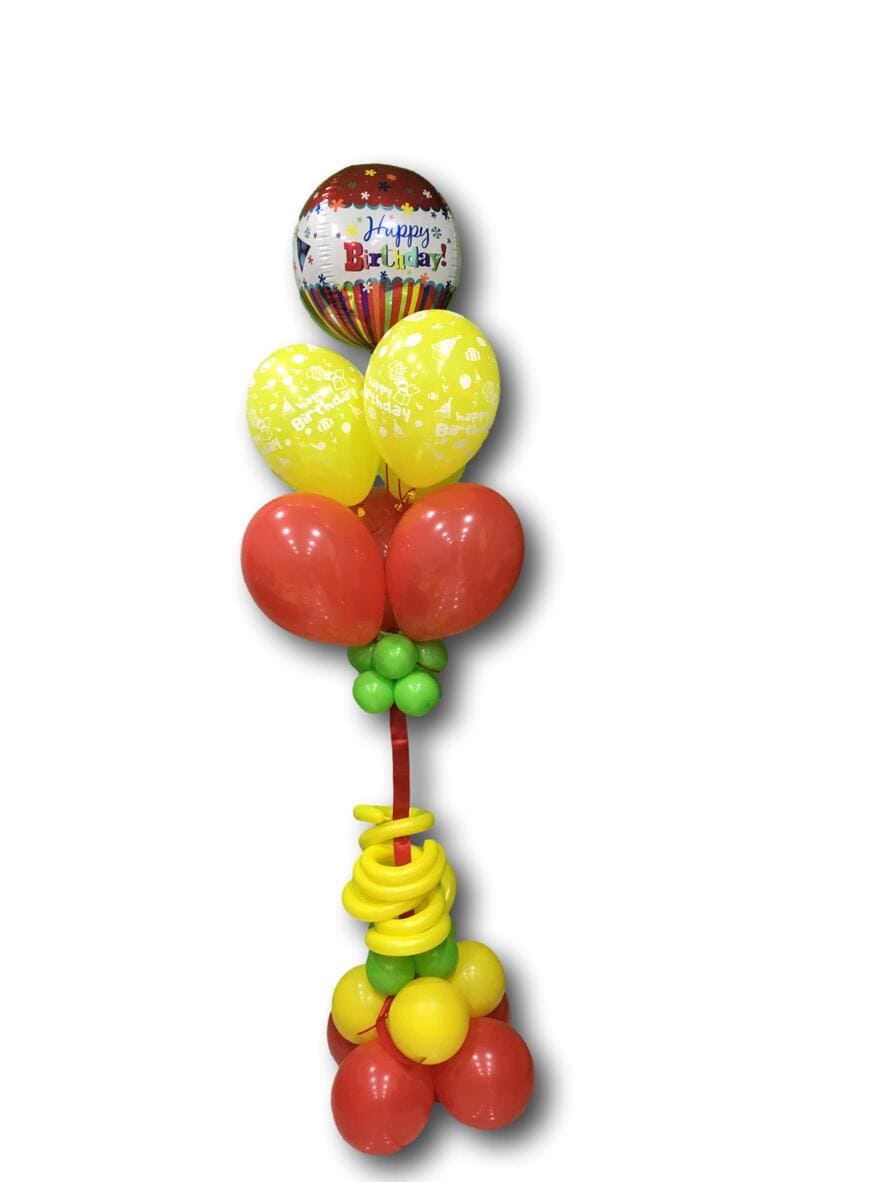Μπουκέτο μπαλονιών με κεντρικό foil red orbz ,εξι στρογγυλα latex και βαση.