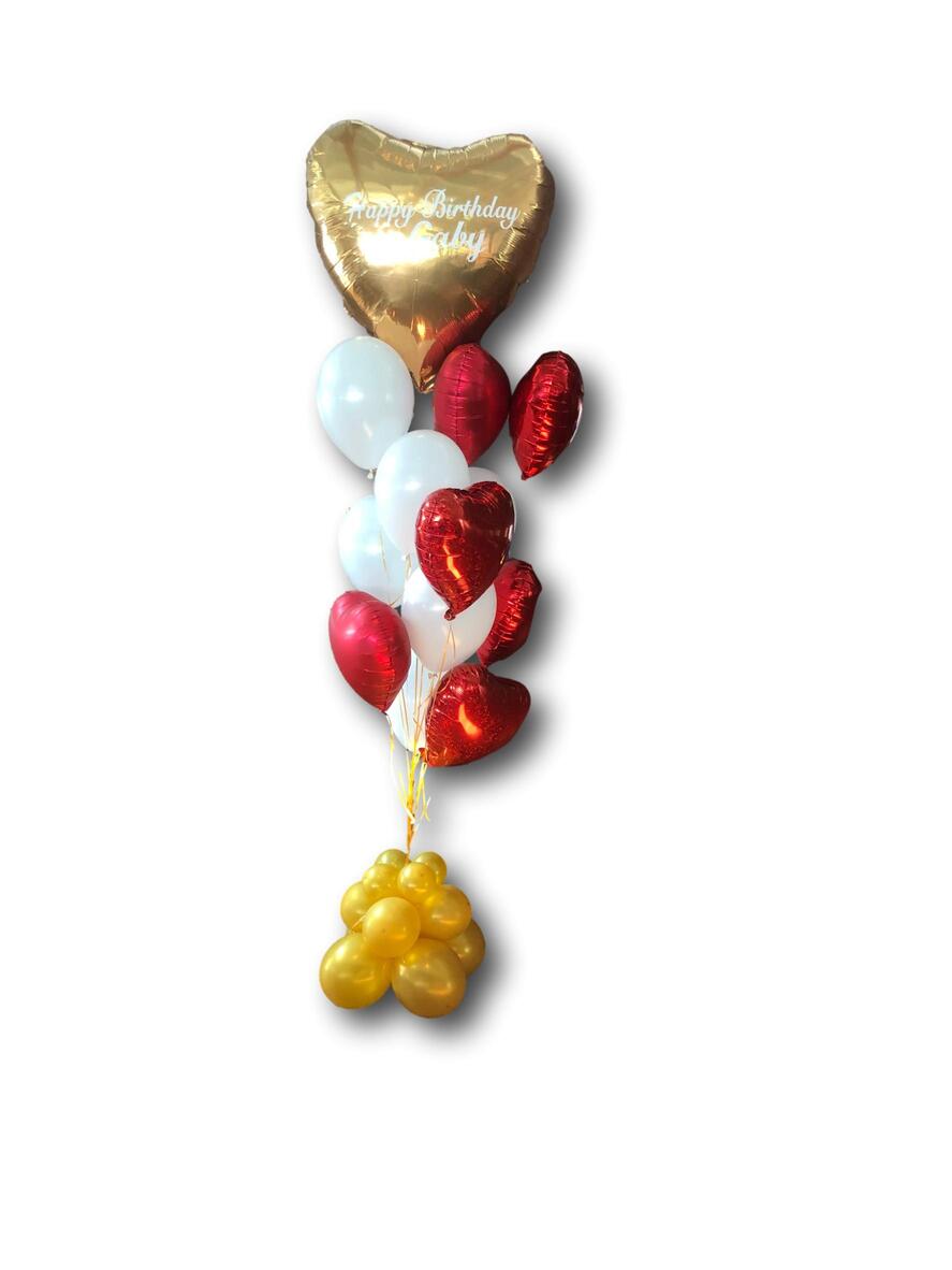 Μπουκέτο μπαλονιών με κεντρική καρδιά μεγάλη καρδιές foil ,στρογγυλά latex και βάση