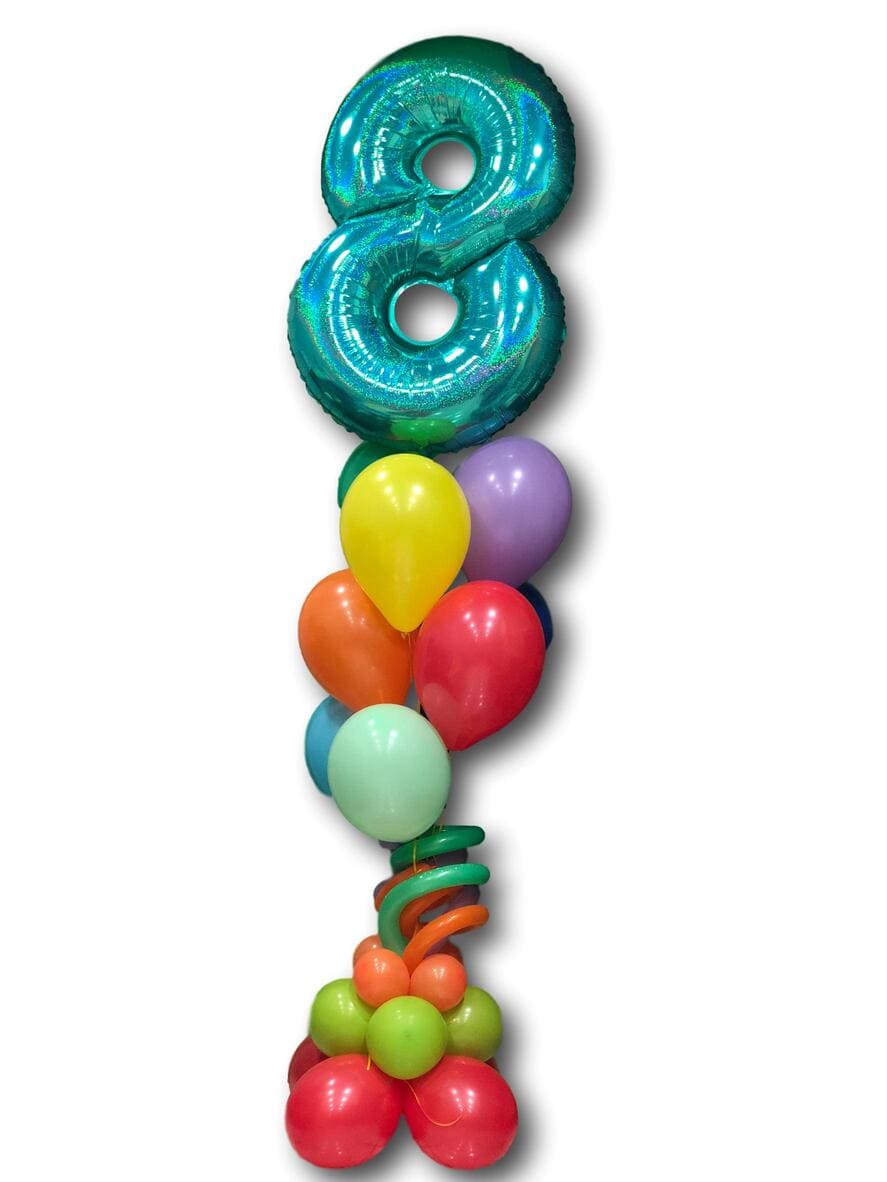 Μπουκέτο από μπαλόνια με αριθμό στην κορυφή και 8 μπαλόνια στρογγυλά latex με βάση από μπαλόνια Υψος κατασκευής 2 μέτρα