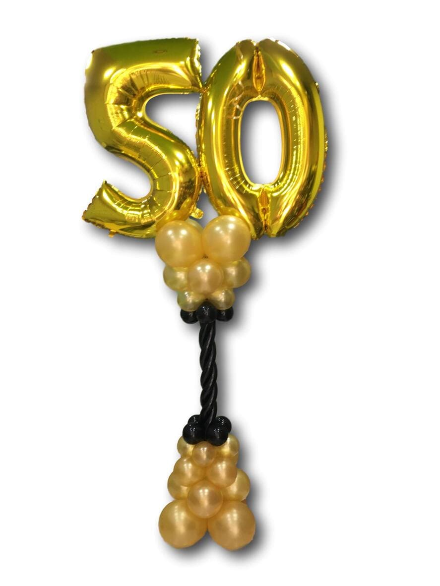 Κολώνα από μπαλόνια με αριθμούς στην κορυφή.