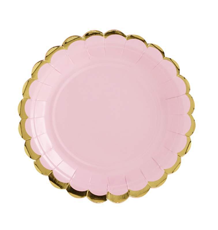 Πιάτα του γλυκού σε χρώμα Ροζ της πούδρας με χρυσό περίγραμμα, για το τραπέζι του πάρτυ! • Διάμετρος: 18 cm • Το πακέτο περιλαμβάνει 6 χάρτινα πιατάκια σε χρώμα Ροζ της πούδρας με χρυσό περίγραμμα
