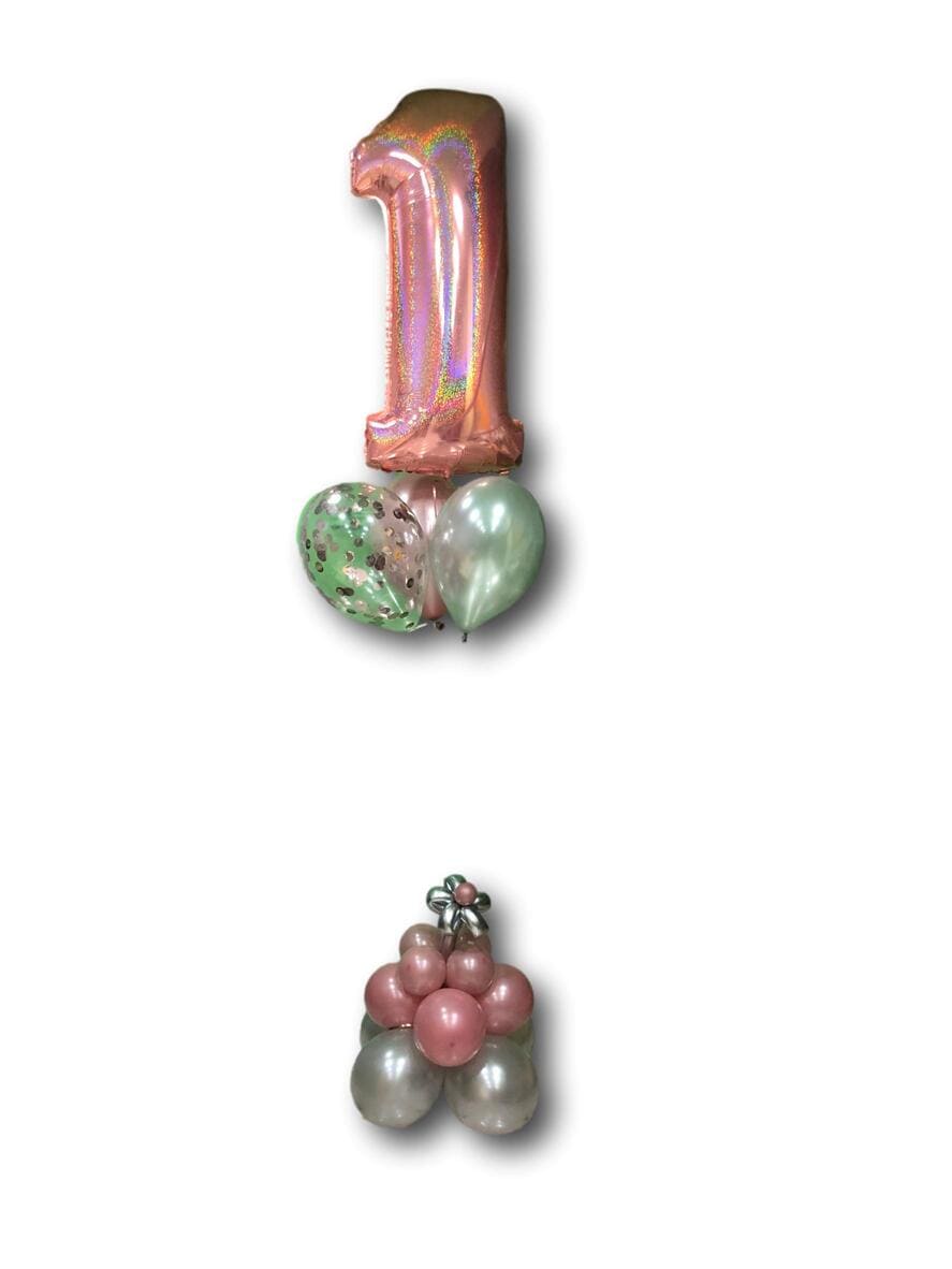 Σύνθεση με μεγάλο αριθμό,3 στρογγυλά latex και βαση από μπαλόνια Υψος κατασκευής 2 μέτρα