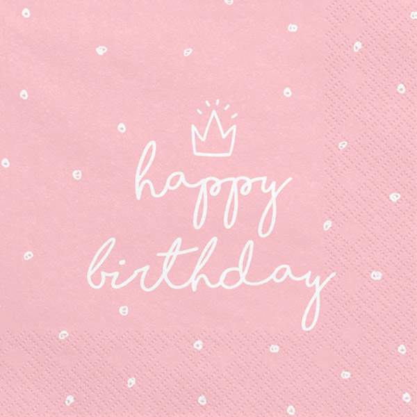 Χαρτοπετσέτες Ροζ Happy Birthday (20 τεμ) φαγητού. Υπέροχη επιλογή για να οργανώσετε και να διακοσμήσετε το τραπέζι των γενεθλίων ή του θεματικού πάρτυ.