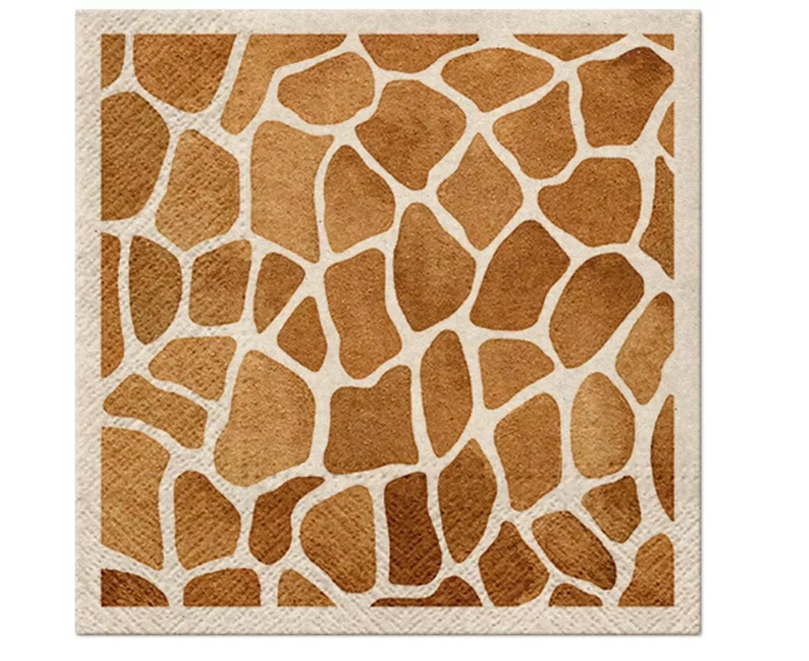 Χαρτοπετσέτες με σχέδιο Καμηλοπάρδαλη, για να διακοσμήσετε το μπουφέ του Safari πάρτυ ή της βάπτισης. • Κάθε πακέτο περιλαμβάνει 20 χαρτοπετσέτες • Διαστάσεις: 33 x 33 cm